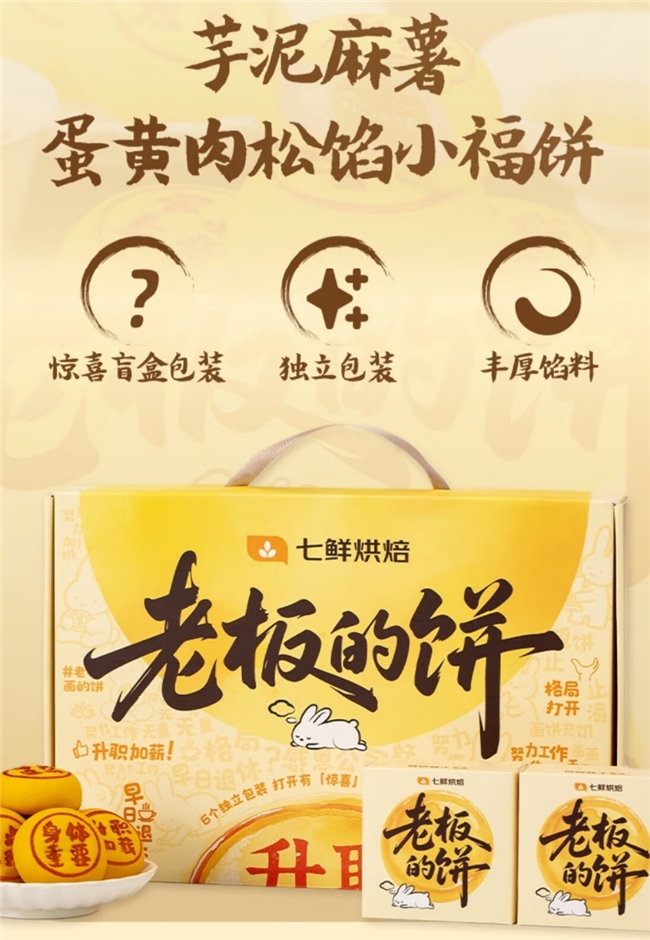 从市场反馈来看,京东七鲜的热销产品正印证了今年中秋消费市场的新趋势。一方面,传统的月饼不再是中秋礼赠市场唯一的“主角”,消费者对礼品的需求正变得更多元和个性化。如七鲜烘焙推出的【老板的饼】芋泥麻薯蛋黄肉松馅小福饼内陷层次丰富,且在设计上加入盲盒属性,符合当下年轻消费者的喜好,而另一款花好月圆桃山皮月饼礼盒,则在造型上加入巧思,九款造型每一个都蕴含不同的寓意,让月饼不仅是美食更是古风诗集。